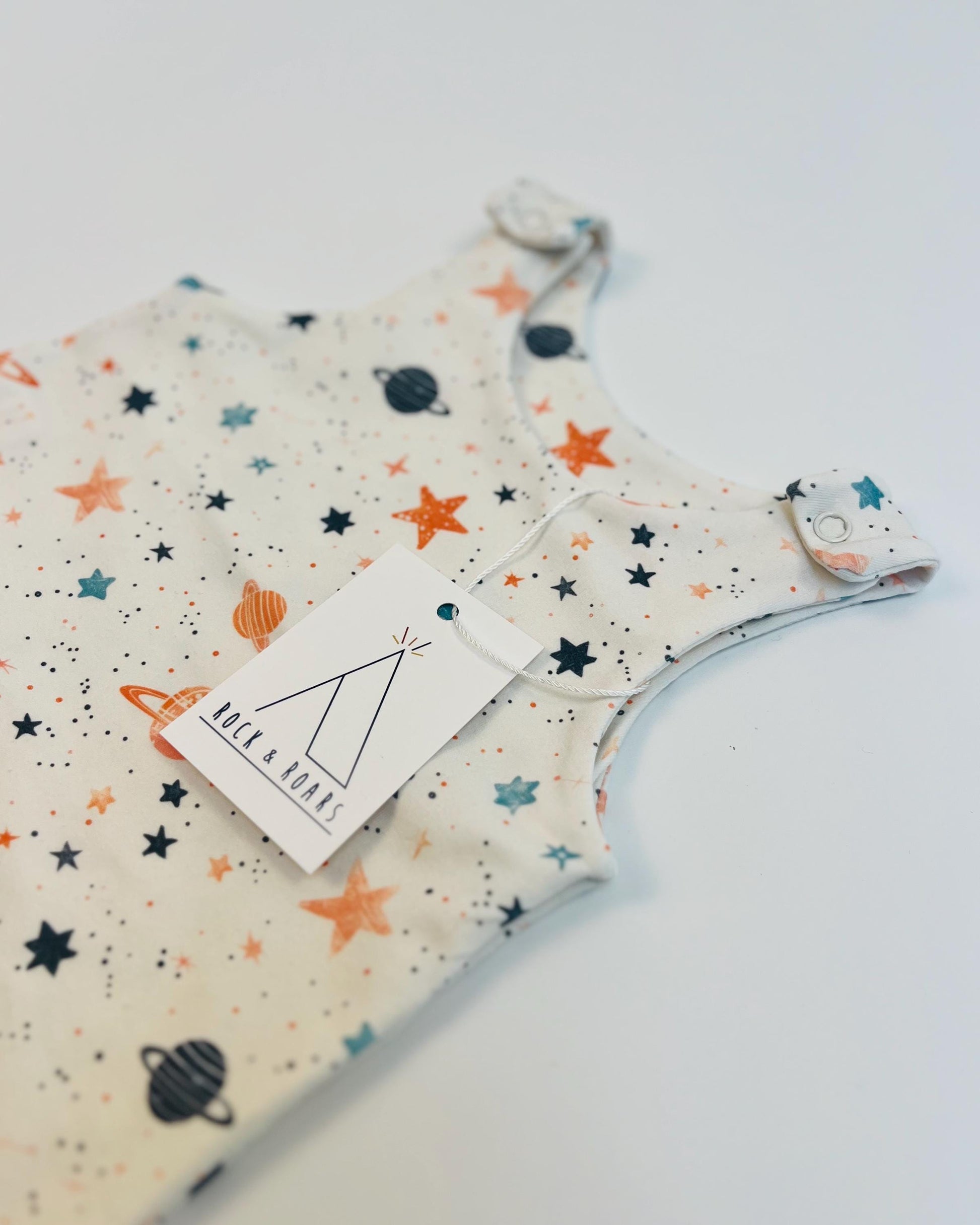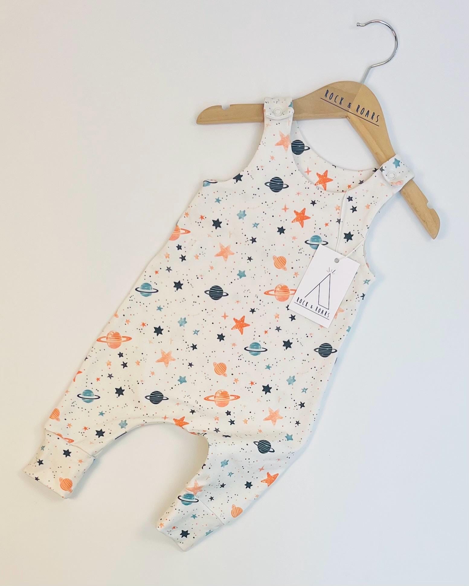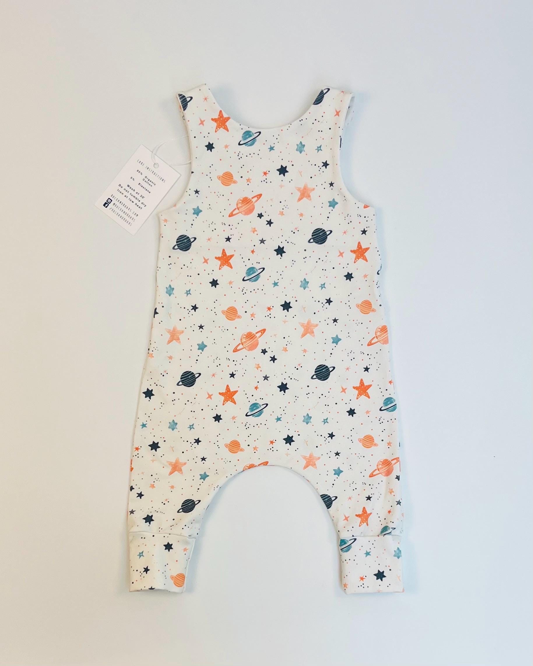 This listing is for one Outer Space harem romper, as shown in photos - size to be selected.